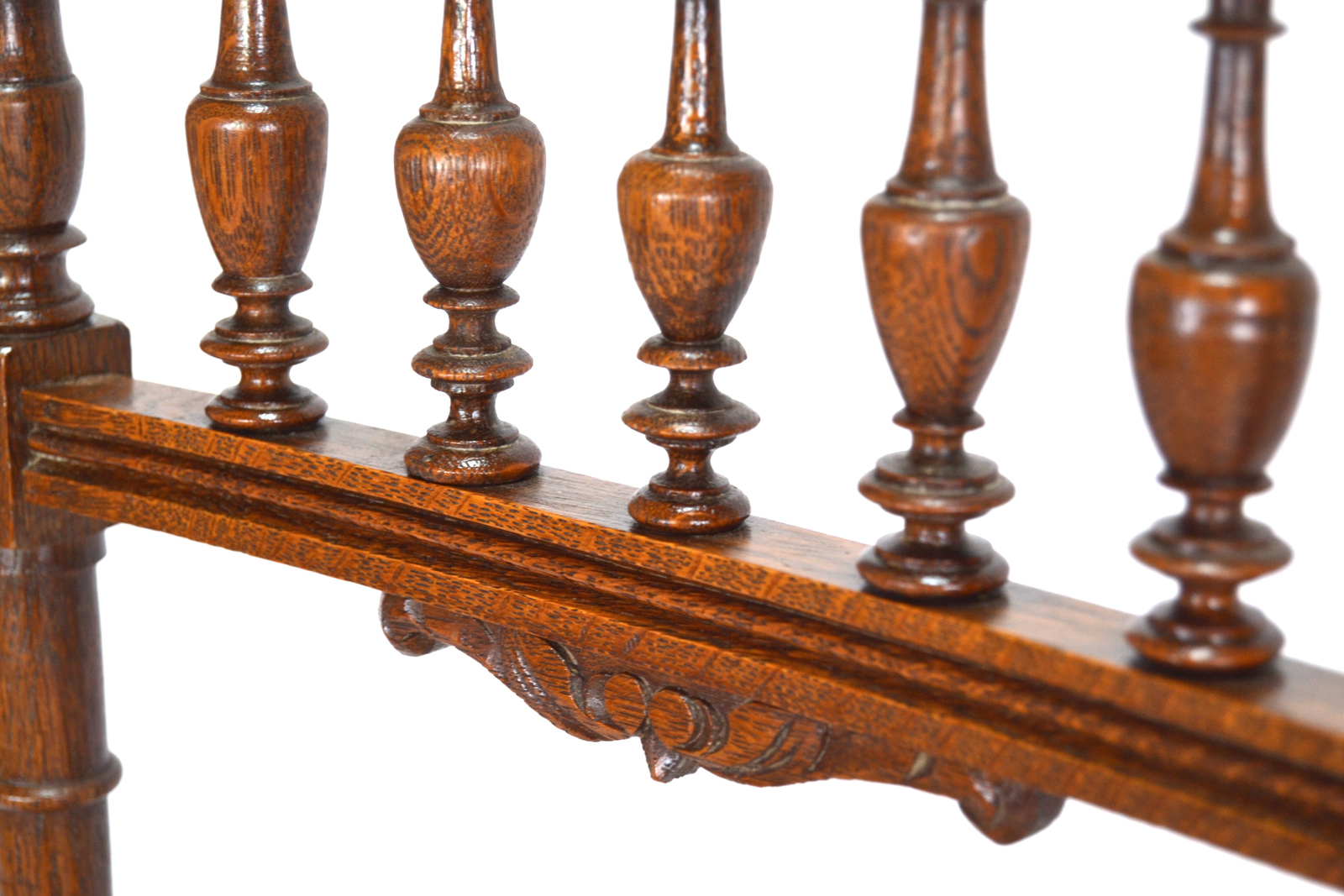 Restaurierter aus Eiche gefertigter flämischer Gründerzeitstuhl um 1890 mit sehr schöner geschnitzter Lehne